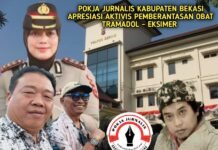 Ketua Kelompok Kerja (Pokja) Jurnalis Kabupaten Bekasi menyampaikan apresiasi kepada para aktivis pemberantasan obat terlarang, di antaranya Forum Anti Obat Terlarang (Fortal) dan LSM Gerakan Anti Narkotika dan Zat Adiktif (GANAS), atas komitmen mereka dalam memerangi peredaran obat keras ilegal.
