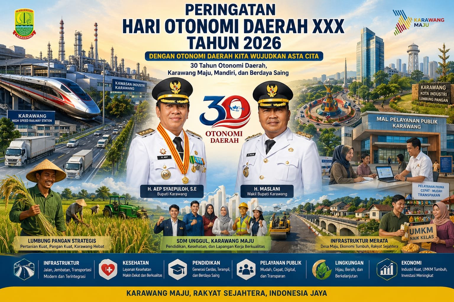 Peringatan Hari Otonomi Daerah ke-30 ini menjadi refleksi atas perjalanan Karawang dari daerah agraris menuju salah satu pusat pertumbuhan ekonomi nasional.