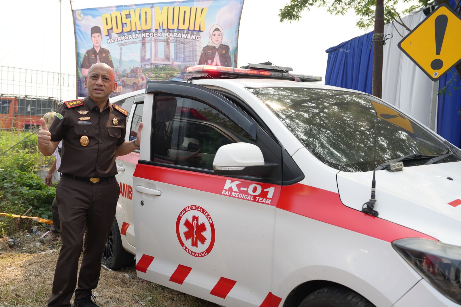 Selain itu, tersedia dua unit ambulans dari PMI dan Rai Medical Team, serta satu unit ambulans siaga dari Kejari Karawang yang dilengkapi tenaga medis profesional.
