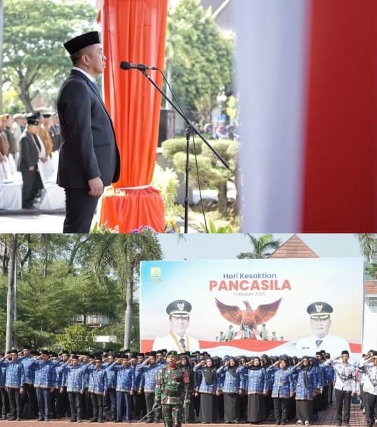KARAWANG | TERASPASUNDAN.COM | Upacara Peringatan Hari Kesaktian Pancasila (HKP) tingkat Kabupaten Karawang Tahun 2025 berlangsung khidmat di Plaza Pemda dengan mengusung tema peringatan Hari Kesaktian Pancasila tahun 2025 yaitu “Pancasila Perekat Bangsa Menuju Indonesia Raya”, Rabu (1/10/25).