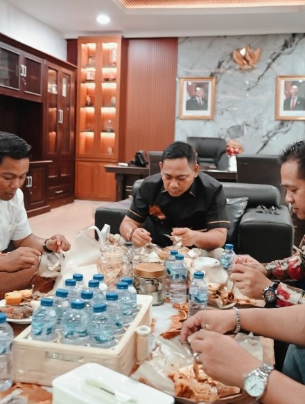 Namun, di saat suasana di luar gerbang memanas dan penuh ketegangan, pemandangan yang sangat berbeda justru terlihat di dalam salah satu ruangan di gedung Pemda. Plt Bupati Bekasi tampak sedang asyik menikmati makan siang bersama.