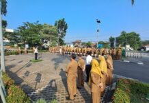 KARAWANG | TERASPASUNDAN.COM | Manajemen RSUD Jatisari menggelar kegiatan apel pagi rutin pada Senin (20/4/2026) di halaman rumah sakit. Kegiatan tersebut diikuti jajaran pegawai, tenaga kesehatan, serta staf administrasi sebagai bentuk penguatan kedisiplinan dan komitmen pelayanan kepada masyarakat.