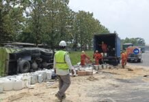 “Arus lalin sudah kembali normal, muatan material yang tumpah di jalan tol berikut 2 kendaraan yang mengalami kecelakaan sudah berhasil dievakuasi oleh petugas tol Cipali dan Satlantas Polres Purwakarta,” ungkapnya.