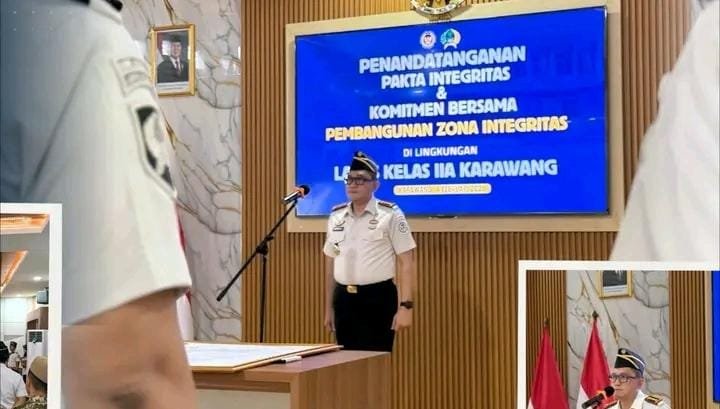 KARAWANG | TERASPASUNDAN.COM – Lembaga Pemasyarakatan (Lapas) Kelas IIA Karawang melaksanakan Penandatanganan Pakta Integritas dan Komitmen Bersama dalam rangka pembangunan Zona Integritas menuju Wilayah Bebas dari Korupsi (WBK) dan Wilayah Birokrasi Bersih dan Melayani (WBBM), Rabu (4/2). Kegiatan ini berlangsung di Aula Sahardjo dan diikuti oleh seluruh petugas serta pegawai magang Lapas Karawang.